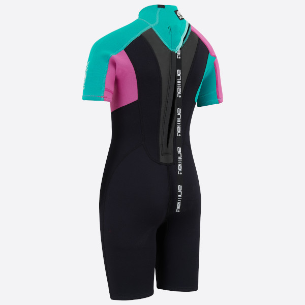 In bright pops of pink and green, the Nova shorty back zip 3/2 girls' wetsuit comes with A-Flex neoprene for the highest level of stretch neoprene with added durability, as well as a Seal Skin Neck to help avoid rubbing and rashes when summer swells beckon.