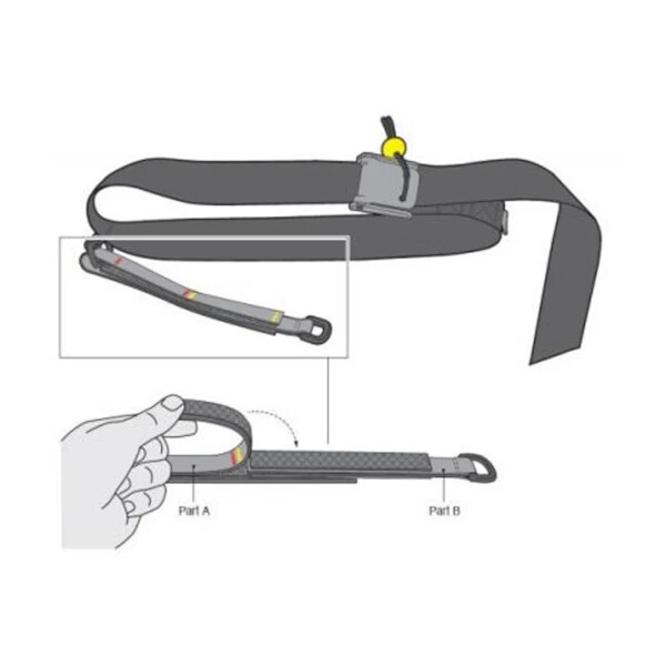 Yellow webbing is threaded at the D-ring with yellow fixing: resistance is low!