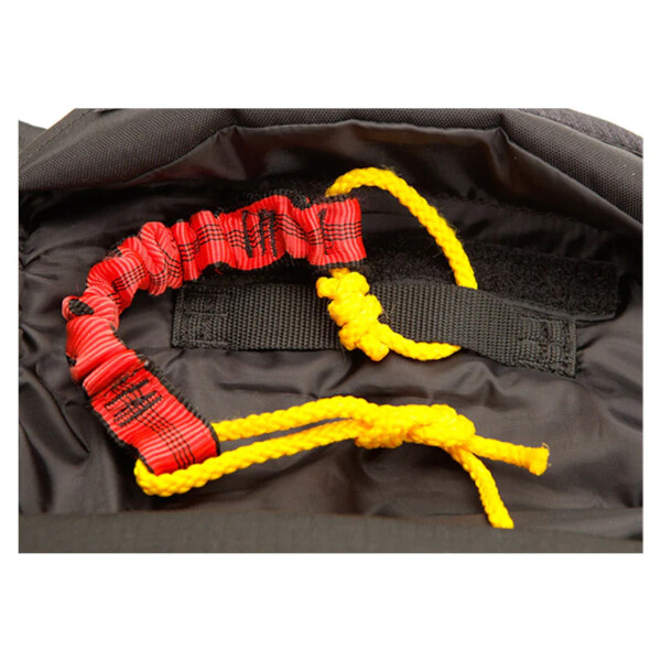 The waist belt has a cam release function with a high visibility pull bead, removable shock absorber, as well as a high end karabiner and stainless steel D-Ring.