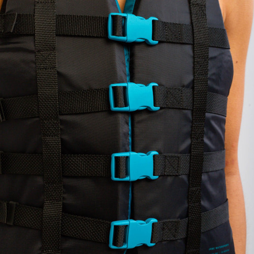 The Jobe Dual Life Vest Unisex Teal is a 50N ISO certified buoyancy aid. The vest is made out of strong and lightweight nylon on the outside and EPE foam on the inside. The soft nylon sides and the adjustable webbing straps make the vest suitable to almost all body sizes and shapes. The D-rings make sure you can safely use this vest while coasting on your boat or PWC. Ripstop nylon fabric for a luxurious feel.