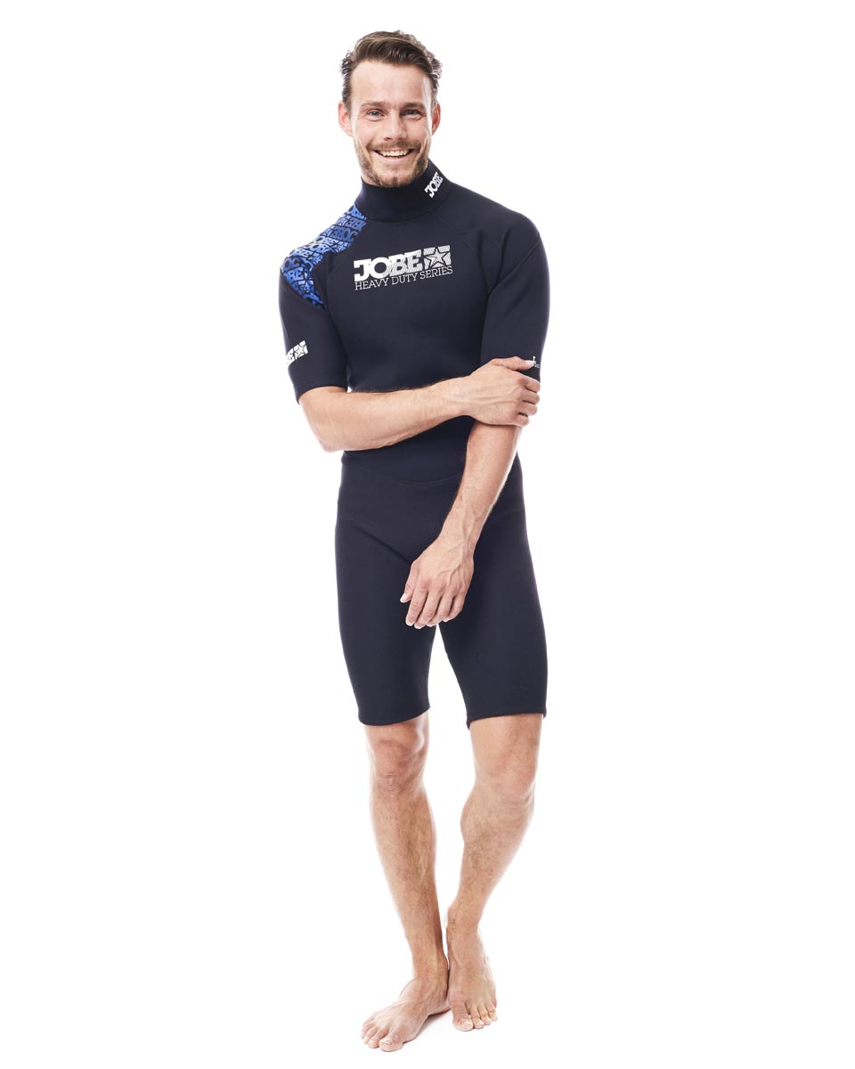 Jobe's heavy duty shorty - engineered with regular stretch neoprene - is outfitted with super strong, taped-on and extra stretchy neoprene for plenty of range in motion. Soft & flexible stitches feel comfy to the user its skin. All critical areas are covered with strengthening tape. The coloured prints linked to each size, make them easy to recognize.